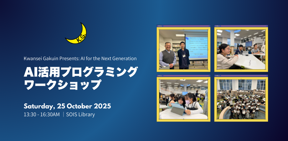 このワークショップは、関西学院大学 副学長・AI活用人材育成プログラム統括・工学部の巳波(みわ)教授の指導の下、千里国際中等部・高等部の生徒たちが中心となり、AI活用プログラミング教育を実践する関西学院大学の学生団体とともに企画・運営をいたします。